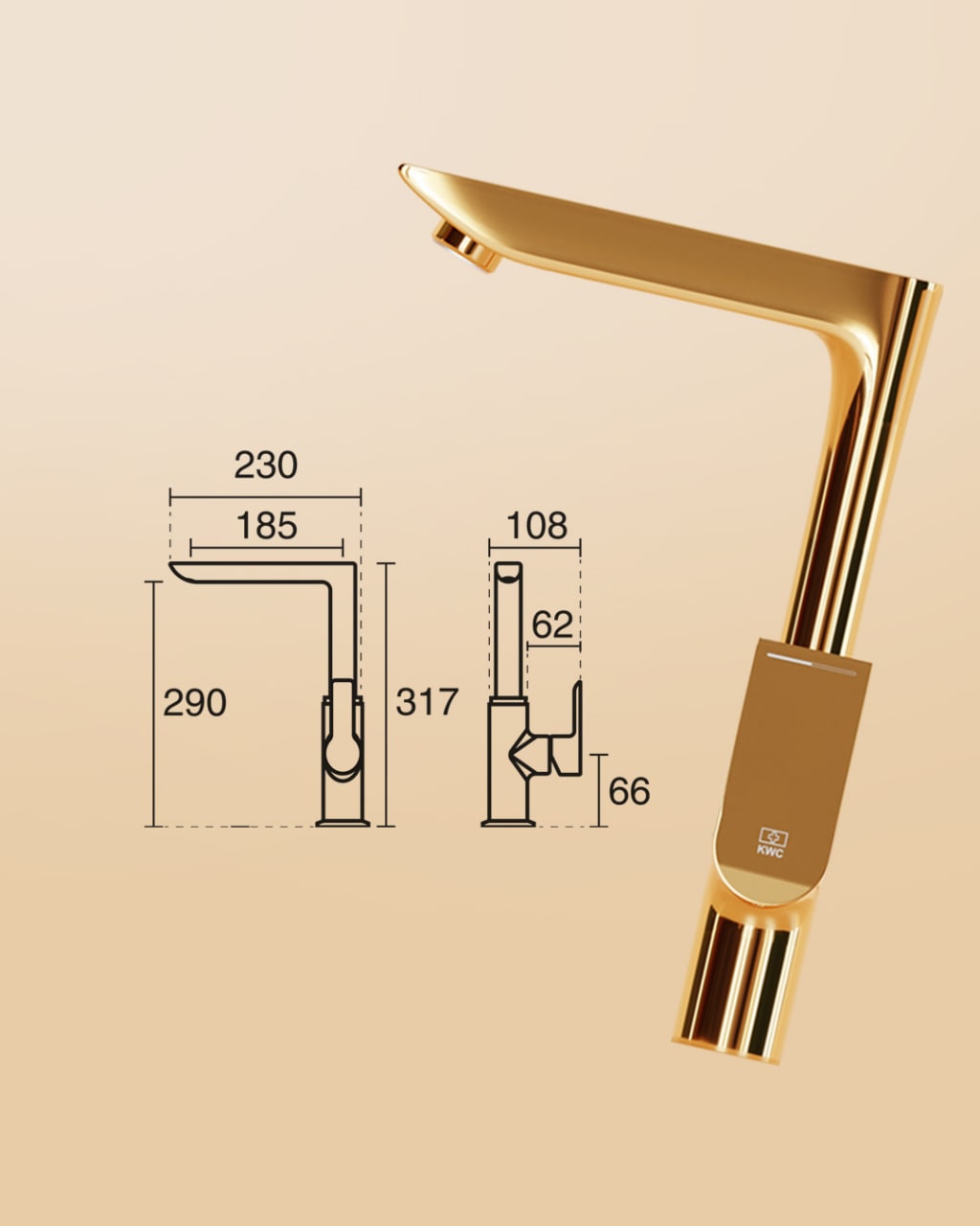 شیر آشپزخانه ریتا تاپ لاین کروم کی دبلیو سی KWC